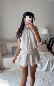 Sukienka Elysia Mini marki SEAME to wyjątkowa propozycja, która łączy zmysłową elegancję z niezrównanym komfortem noszenia. Wykonana z lekkiej bawełny lub siateczki (w zależności od wersji), wyróżnia się głębokim dekoltem typu cowl z wiązaniem na szyi, odkrytymi plecami z efektownym wiązaniem oraz marszczonym panelem w talii, który podkreśla sylwetkę. Zaprojektowana w sezonowej palecie kolorów—od ciepłych neutralnych po wyraziste odcienie—ta mini sukienka doskonale sprawdzi się zarówno podczas klubowych wieczorów, jak i eleganckich wyjść.